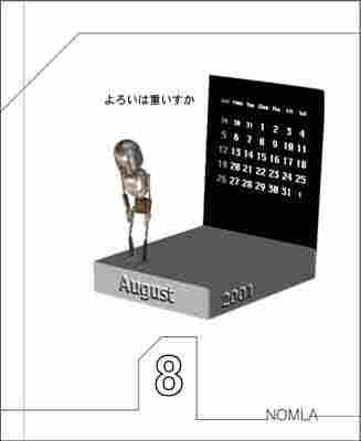 このカレンダーを作ったのは大学祭の直後でね、 打ち上げの直後でね、酒飲んだあと薄着で アトリエで寝てたため風邪ひいた直後でね。 風邪っぴきのまま徹夜したもんだから しんどかったですよ。 そのあと風邪こじれるし。ま、自業自得だけどさ。